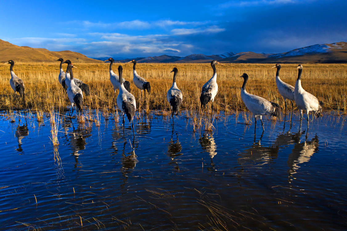 黑颈鹤飞回阿坝县贾曲河畔。尕让泽登/摄