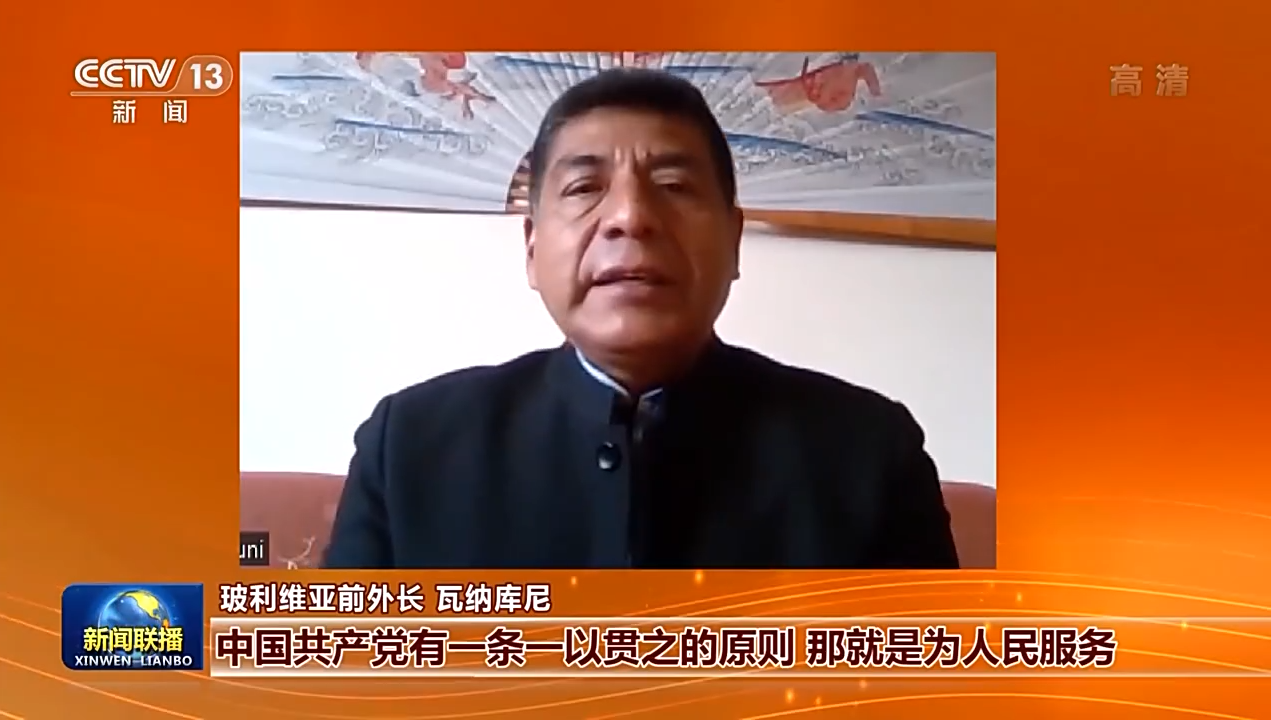 玻利维亚前外长 瓦纳库尼:中国共产党有一条一以贯之的原则,那就是为人民服务。中国革命和建设的一切都是为了人民,习近平主席在二十大报告中再次强调以人民为中心,这也给世界各国带来启示,好的政府必须造福人民。