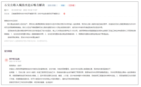 网友建议石安公路入城段改造后解决噪声,官方回复来啦
