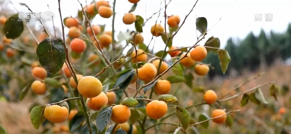 当地从2017年起引种甜柿新品种,甜柿的亩产逐年增加。今年,当地5000亩甜柿亩产可达2000多斤,带动1500多名村民和30多家电商就业,甜柿的采摘将一直持续到明年1月。