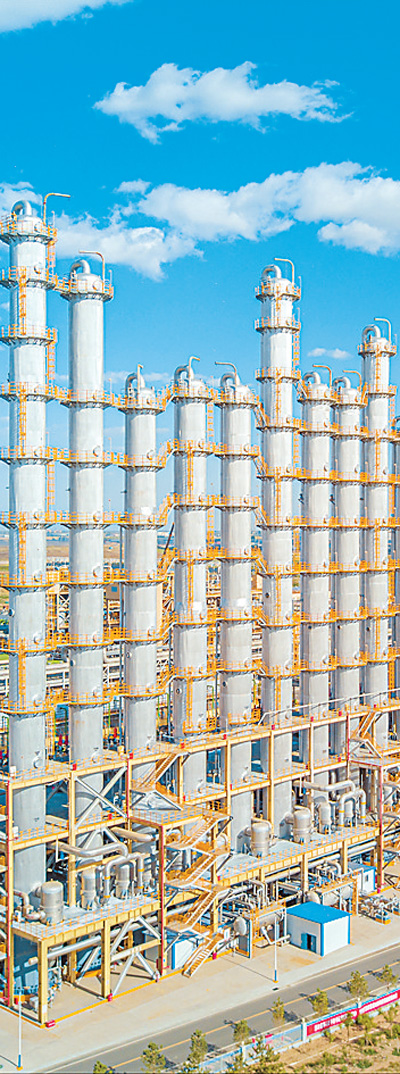 内蒙古通威高纯晶硅有限公司厂区里的精馏塔。 |