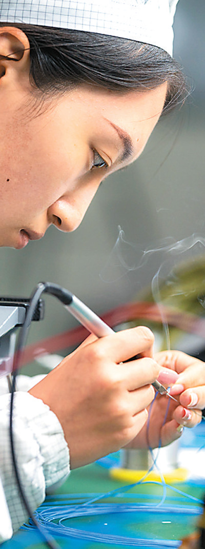 长光卫星技术股份有限公司电装车间里,电装操作员在制作电缆。 |