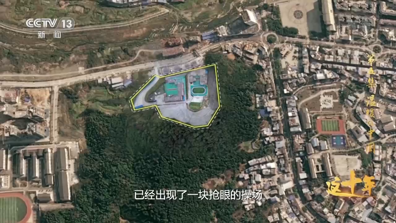 这是高分卫星2013年在贵州黔西南州望谟县拍下的照片,这片山坡上还空无一物。2022年,当卫星再次经过这里,已经出现了一块抢眼的操场。