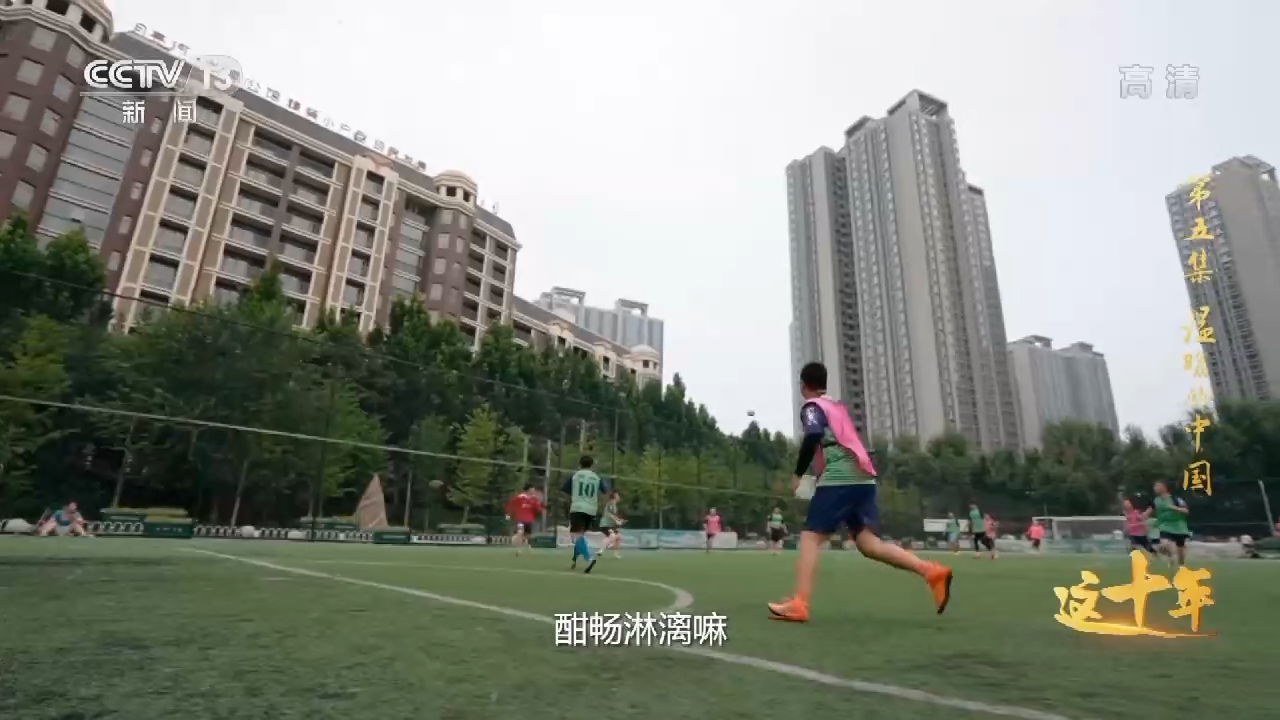 北京通州区居民:以前没有场地跟哥们儿一块在土地上踢呗,现在心情舒畅,每周一场,就踢球快乐嘛,酣畅淋漓嘛。