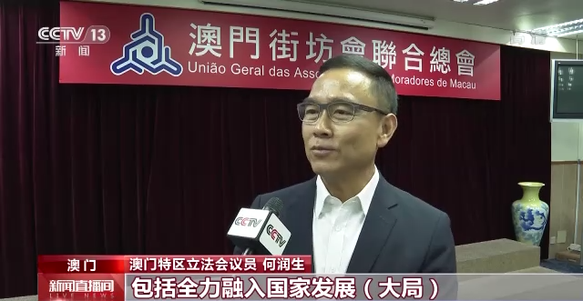 澳门特区立法会议员 何润生:未来,我们会贯员 何中央所给予我们澳门的惠澳政策,包括全力融入国家发展大局,尤其是积极地参与到大湾区和深合区的发展。我们不辜负党中央对我们的期盼,我们会用实际的行动去完成我们有关的工作,共同去谱写好我们中华民族伟大复兴。