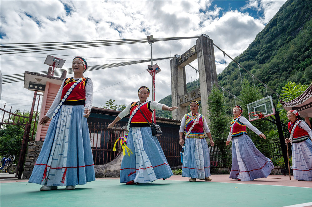 云南省怒江州福贡县石月亮乡拉玛底村村民自发组成的“奋进合唱团”在村委会排练节目(2022年9月14日摄)。2020年,怒江州26.96万贫困人口全部脱贫,249个贫困村全部出列,4个贫困县(市)全部摘帽。新华社记者 江文耀 摄