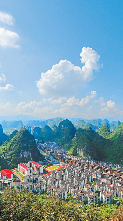 协调发展步伐稳健。图为位于广西壮族自治区柳州市融水苗族自治县的易地扶贫搬迁社区苗家小镇。