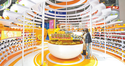 开放发展迈向更高层次。图为在上海市举行的中国国际进口博览会食品及农产品展区,观众在了解进口水果。