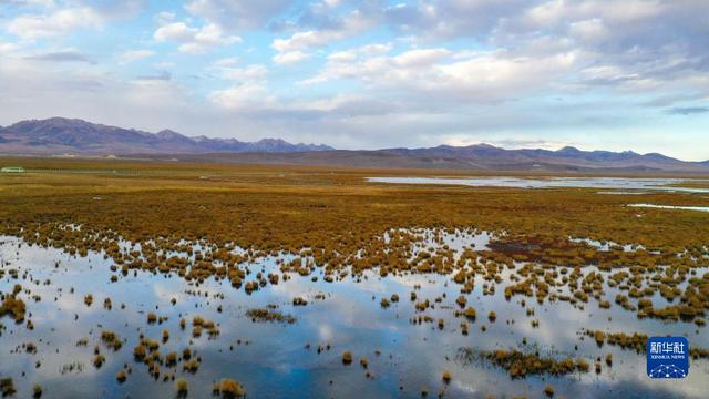 这是10月17日在四川省阿坝藏族羌族自治州阿坝县拍摄的漫泽塘湿地景色(无人机照片)。 深秋时节,四川省阿坝藏族羌族自治州境内的大片湿地景色壮美。作为黄河上游重要水源涵养地,近年来,当地采取护湿还水,禁牧还草等生态修复治理措施,全力推动黄河上游生态保护,境内湿地生态环境得到持续改善。 新华社记者 王曦 摄