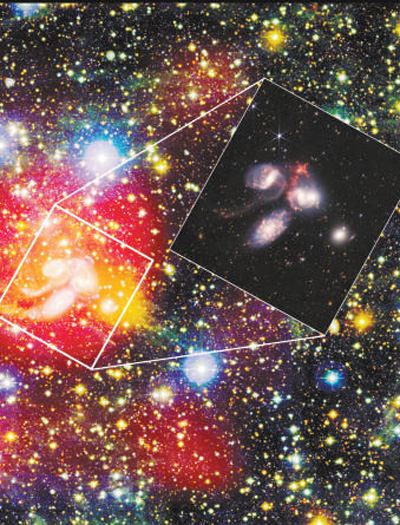 经过研究分析,科研团队最终选中了著名致密星系群“斯蒂芬五重星系”进行观测。自1877年被法国天文学家斯蒂芬发现后,“斯蒂芬五重星系”便是天文学领域最受关注的星系群,也成为韦布空间望远镜第一批观测并首次向公众展示的5个目标之一。