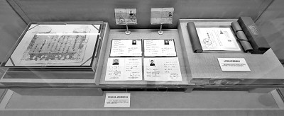 10月10日,北京展览馆,“奋进新时代”主题成就展中央综合展区内,展示的河北邯郸大名县邝文媛一家四代的教师工作证件。光明网记者 季春红摄/光明图片