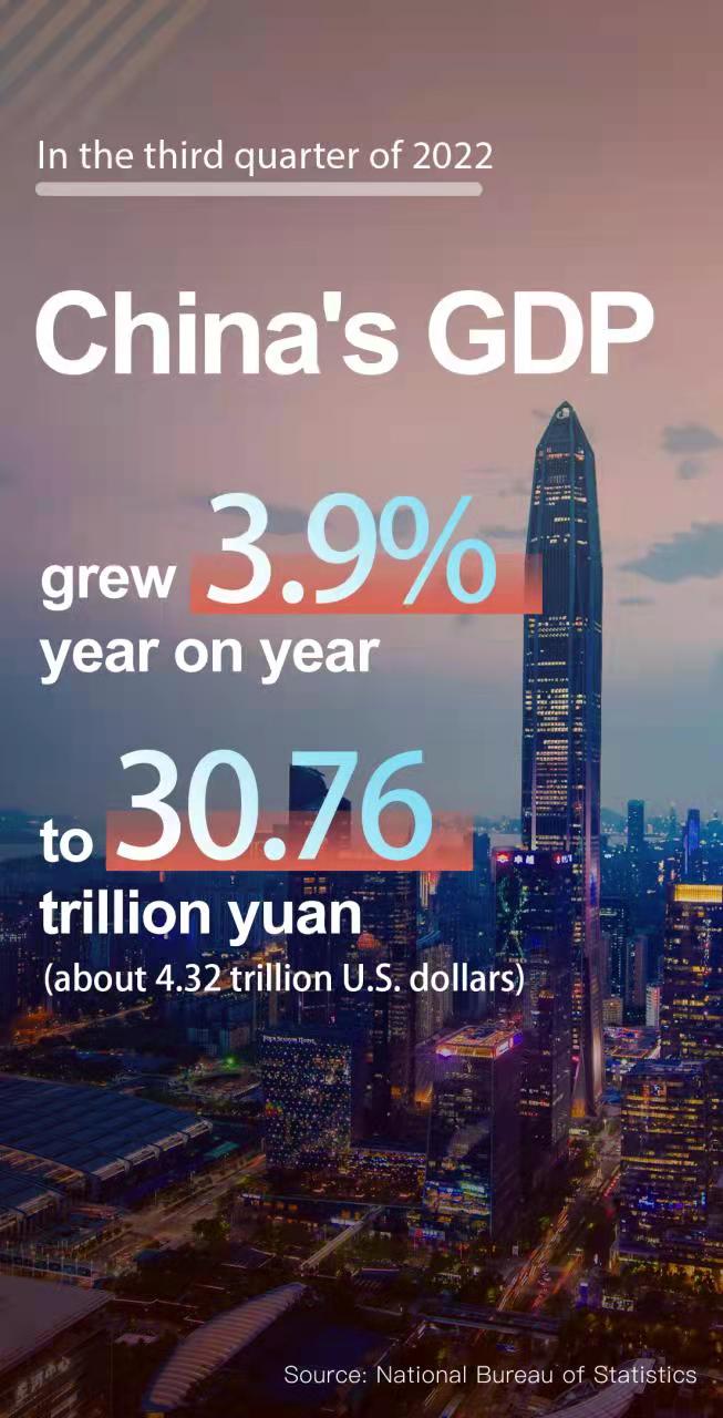 In the first three quarters, the country's GDP increased 3 percent year on year, 0.5 percentage points faster than that in the first half of 2022, according to the NBS data.