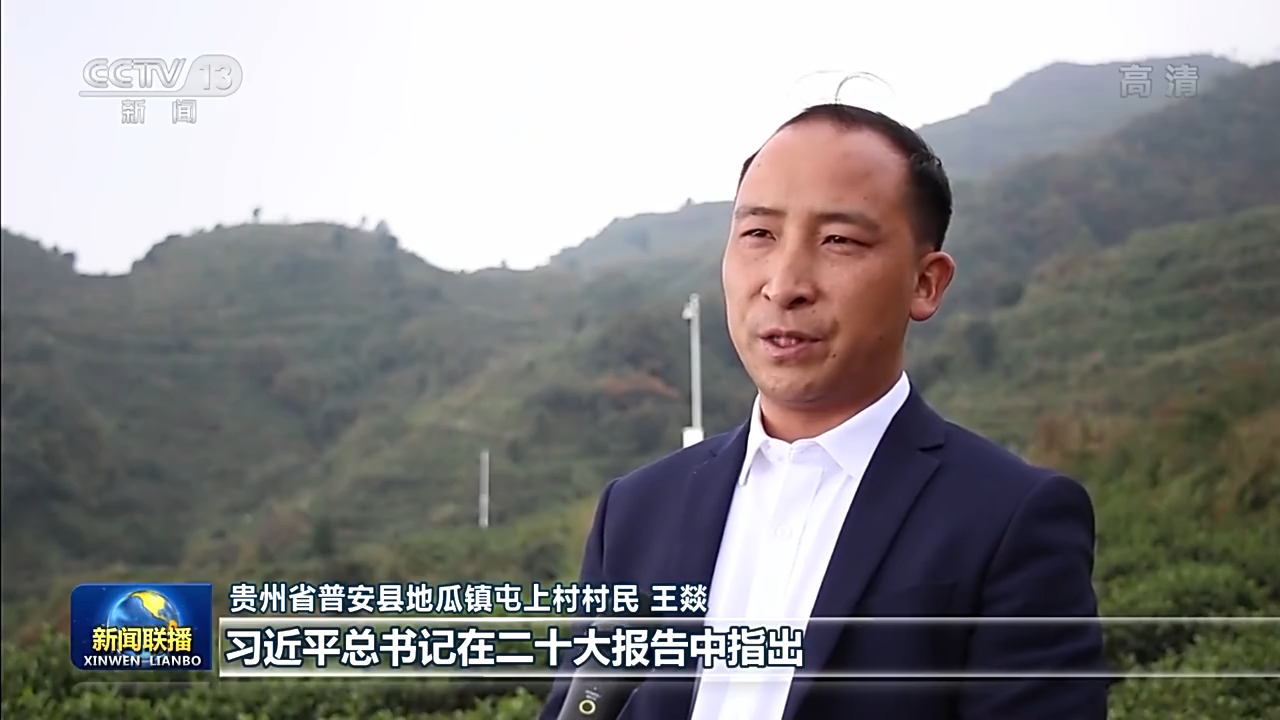 贵州省普安县地瓜镇屯上村村民 王燚:习近平总书记在二十大报告中指出,要全面推进乡村振兴,巩固拓展脱贫攻坚成果,这话说到了我们心坎上,让我们充满了干劲儿,对未来信心满满,我们要全面推进高标准茶园建设,用埋头实干创造更美好的生活。