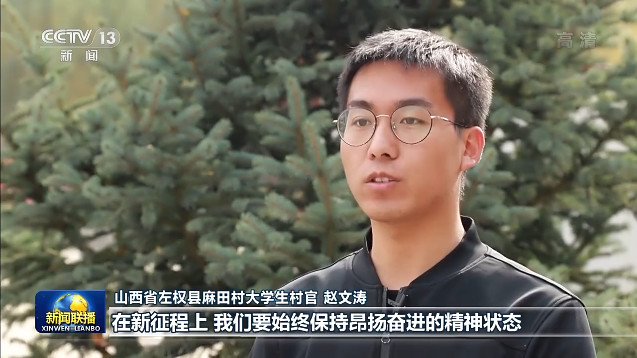 山西省左权县麻田村大学生村官 赵文涛:总书记强调,在新征程上,我们要始终保持昂扬奋进的精神状态,从脱贫攻坚到乡村振兴,前进道路不会一帆风顺,我们只有不断踔厉奋发、勇毅前行,在乡村振兴的伟大事业中贡献出自己的青春和力量,不断把人民对美好生活的向往变为现实。