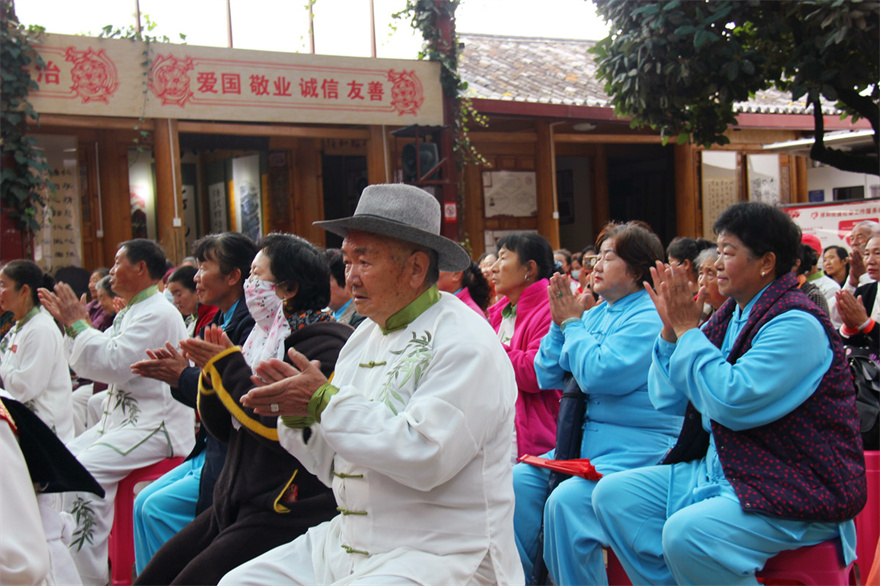 活动首先进行二十四式太极拳的集体展示,表演者将太极拳含蓄内敛、连绵不断、以柔克刚的风格淋漓尽致地展现在大家眼前,展示出了太极拳内外兼修、博大精深的内涵。随后登场的《永远跟党走》《49式太极剑》《又唱浏阳河》等八个展演用整齐划一、刚柔并济、舞武相融、优美大方的动作,充分展示了老年人们积极向上的精神风貌。
