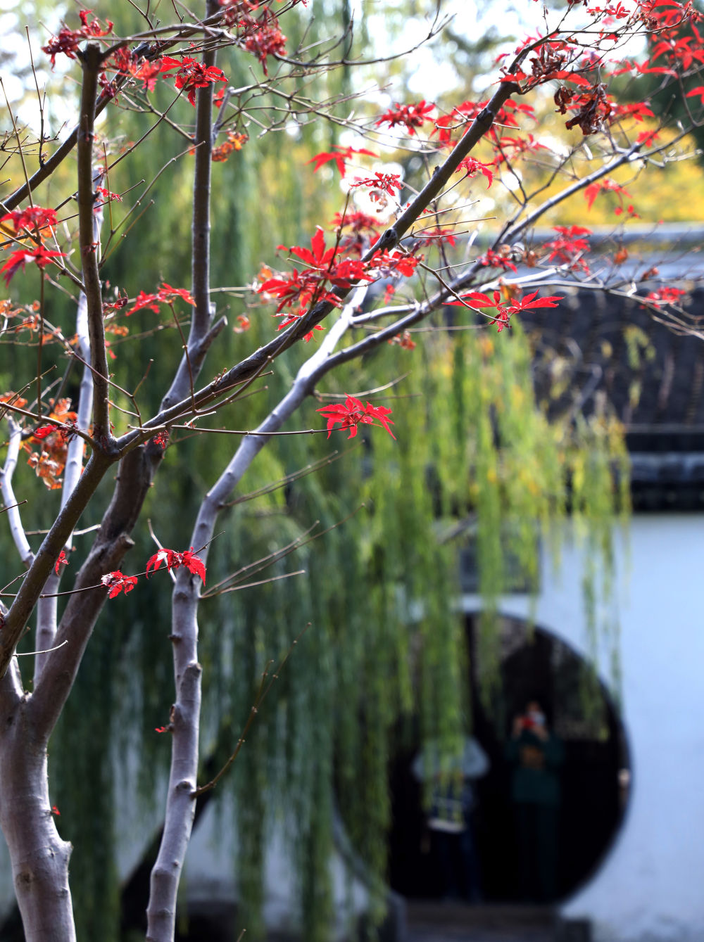 10月20日,游人在江苏省苏州市可园拍摄秋景。新华社发(杭兴微 摄)