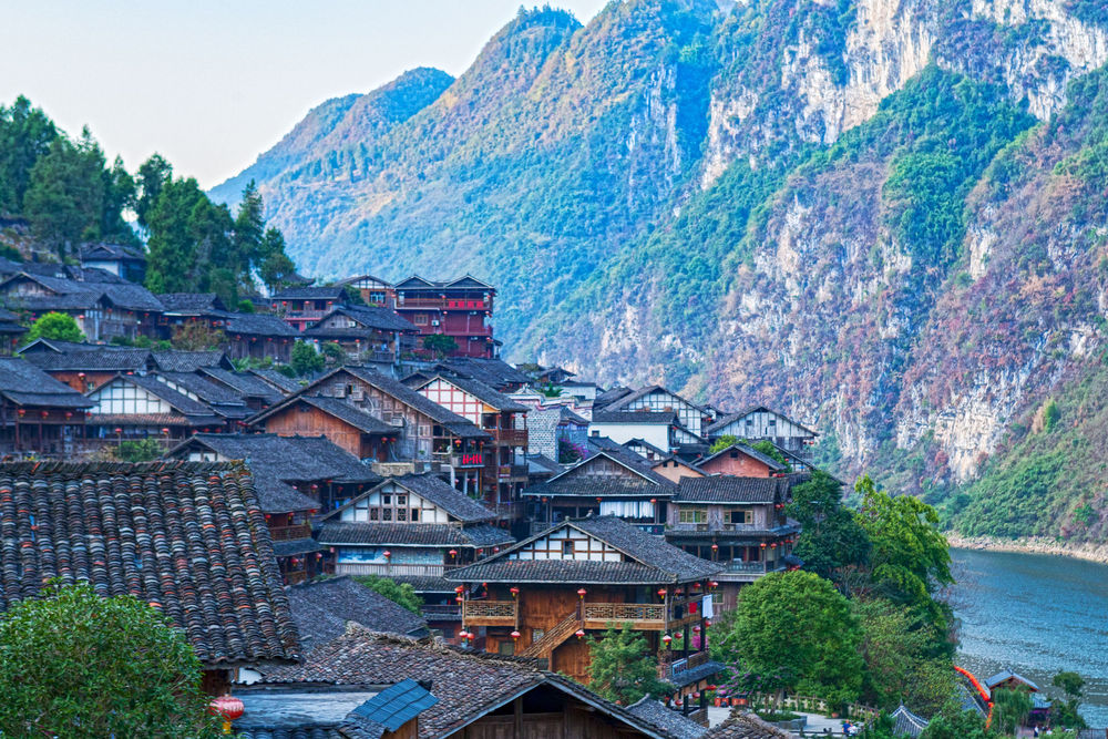 这是10月4日在重庆市酉阳土家族苗族自治县拍摄的位于乌江江畔的龚滩古镇秋景。新华社发(赵俊超 摄)