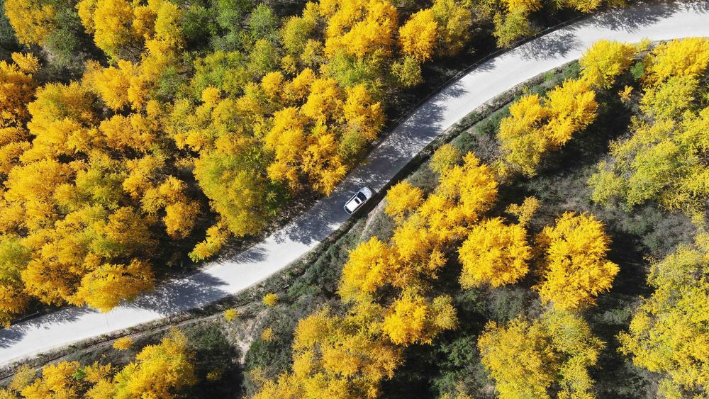 这是10月23日在河北省遵化市侯家寨乡禅林寺古银杏树风景区拍摄的秋景(无人机照片)。新华社发(刘满仓 摄)