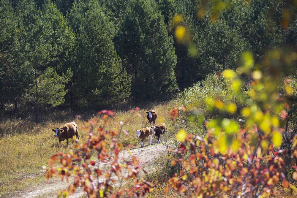 9月14日,牛群在河北省承德市御道口草原森林风景区的草场觅食。新华社发(刘满仓摄)