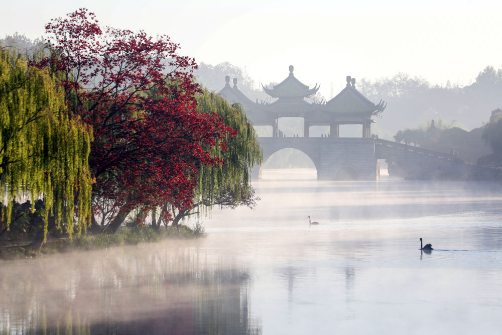 这是10月19日拍摄的江苏省扬州瘦西湖秋日晨景。新华社发(齐立广 摄)