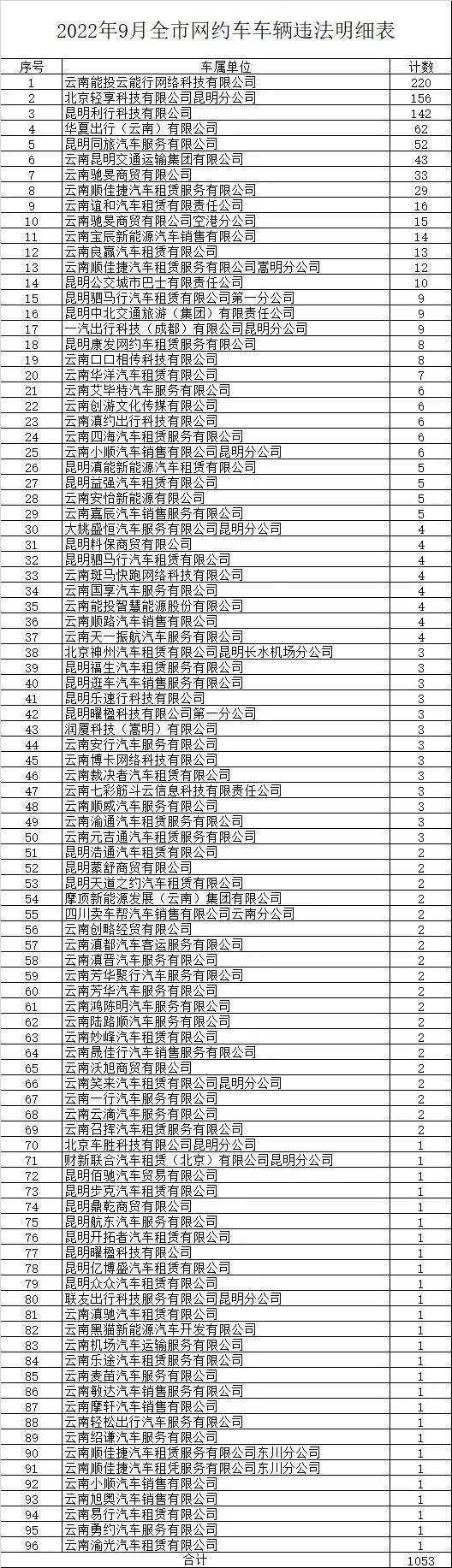 2022年9月全市网约车车辆违法明细表