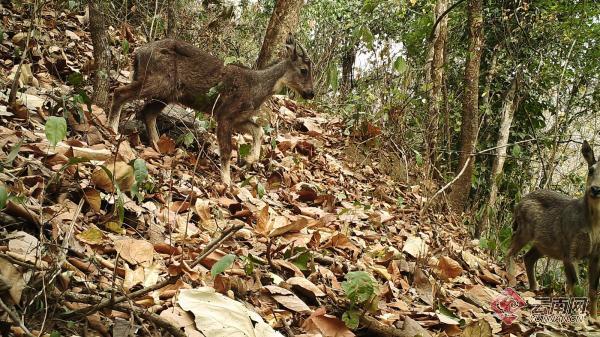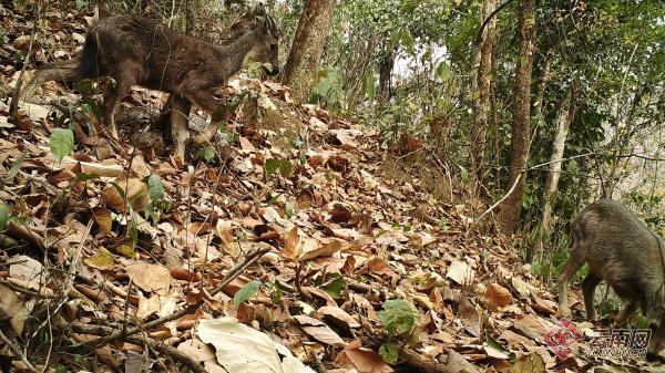 在视频画面里,和煦的阳光透过树梢照在林间空地上,两只缅甸斑羚在丛林坡地上自由散步,它们时而回头东张西望,警觉地注视着周围环境的动静,时而迈着轻盈的步伐,小心翼翼地在林下空地上漫步,时而边走边觅食……红外相机真实记录了原始生态环境下动物与自然和谐共处的珍贵画面。