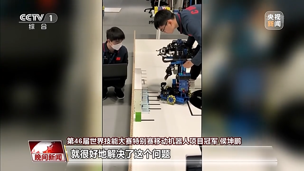 第46届世界技能大赛特别赛移动机器人项目冠军 侯坤鹏:我们第一天是进行机器人的装配任务。赛务组会给我们提供一些最基础的铝材和零件,需要我们在3小时10分钟内将整个机器人搭建好,并且要求在模拟医院的场景中,能够实现路径规划、识别订单、药品配送、病床搬运、检测病房这五个功能模块。工作量很大,时间上还是非常紧张的。