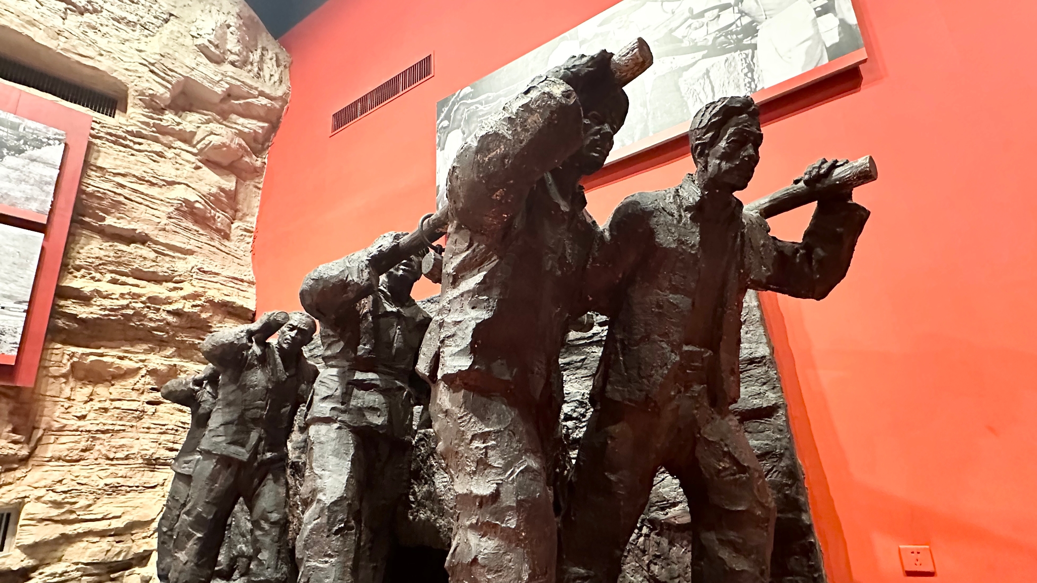 △红旗渠纪念馆,重现当年修建场景的雕塑。(总台央视记者范一鸣拍摄)