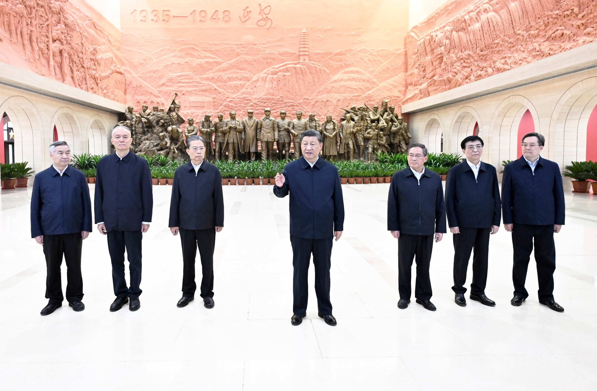△ 10月27日,中共中央总书记、国家主席、中央军委主席习近平带领中共中央政治局常委李强、赵乐际、王沪宁、蔡奇、丁薛祥、李希,瞻仰延安革命纪念地。这是习近平等在延安革命纪念馆,参观《伟大历程——中共中央在延安十三年历史陈列》。