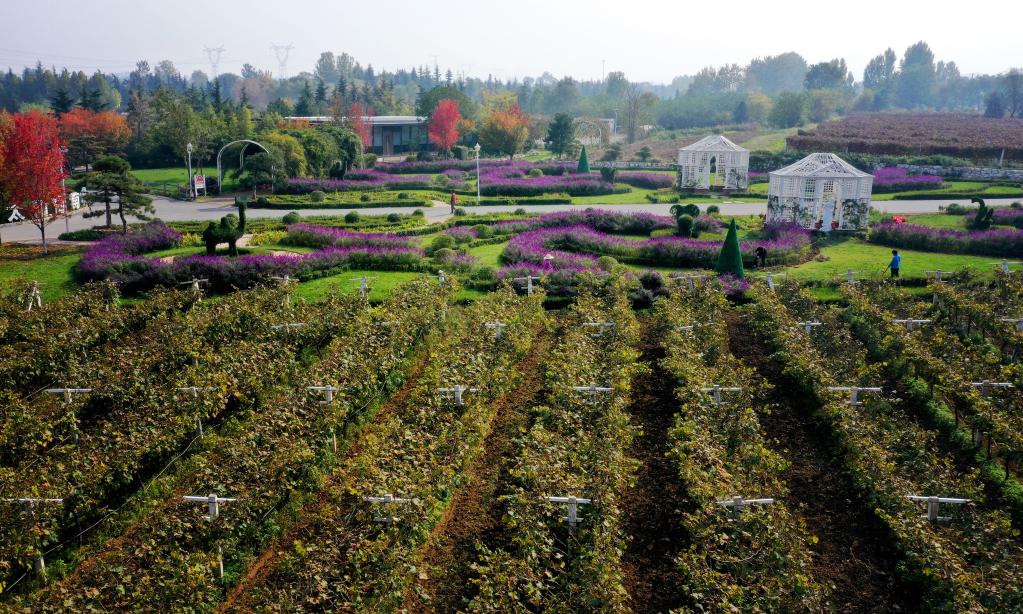 这是10月21日拍摄的西安市长安区太阳葡萄小镇农业景区(无人机照片)。新华社记者 刘潇 摄