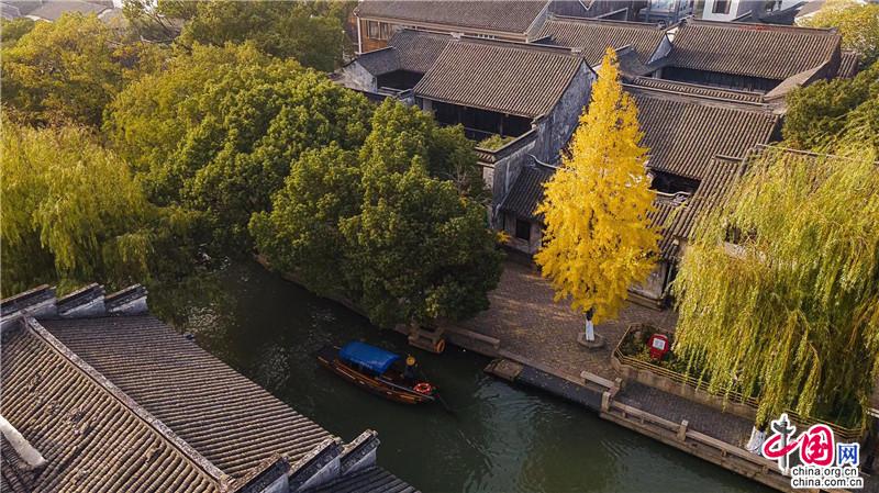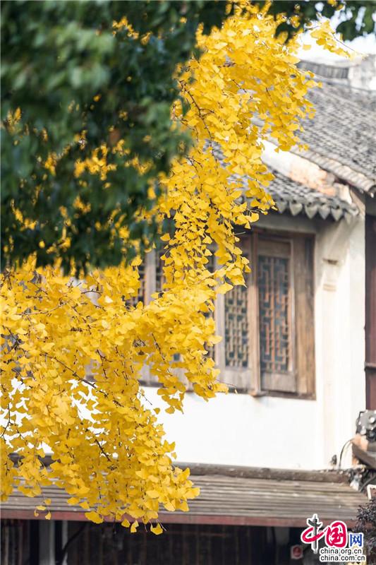 迷失在银杏叶的金黄色梦里,人与秋俱醉。去博物馆吧,门前的银杏快黄了。目光落在树梢,大片大片的金灿笼络着秋味,层层叠叠,如软缎般沁润着游者的心绪。旋舞缥缈的落叶婀娜着腰姿,在空中打着圈儿,透着光亮,酝酿着惊喜。有人说,这是周庄最受欢迎的大树(不接受反驳),丰盛的树叶开出一朵硕大的树荫,更是出片的最佳“伴侣”。就这样简单地坐在树下,什么也不做,捧一杯暖手的奶茶放空自己,闲看游人往来,任飞鸟羡慕。