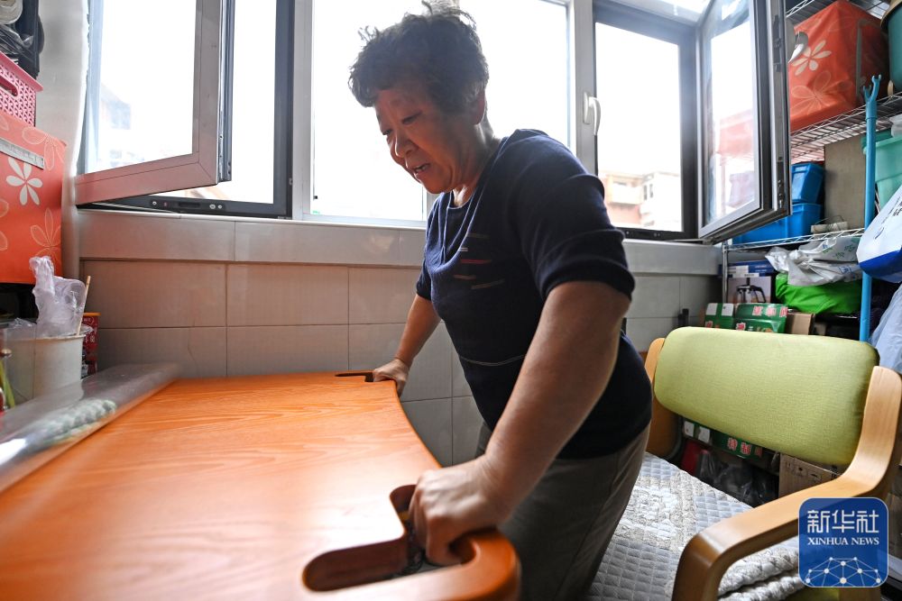 在天津市和平区文化村社区一居民家中,新添置的适老化桌椅配有握手孔位,方便老人起身时借力(10月27日摄)。