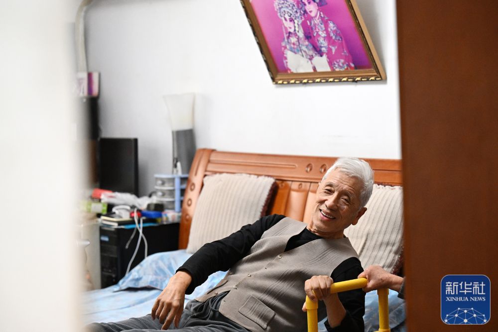 在天津市和平区文化村社区一居民家中,床边安装有安全扶手,方便老人轻松起床(10月27日摄)。