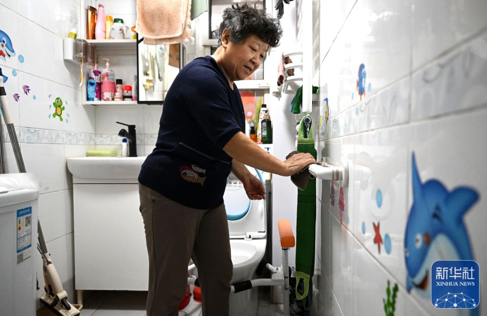 在天津市和平区文化村社区一居民家中,卫生间经过改造后便于老人使用(10月27日摄)。新华社记者李然 赵子硕摄影报道