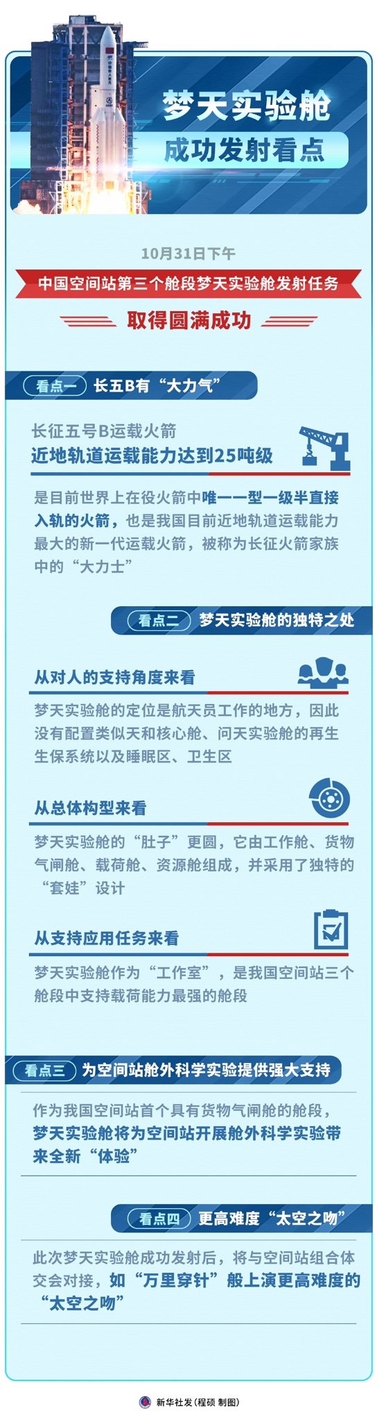 新华社北京10月31日电 题:梦天实验舱成功发射看点