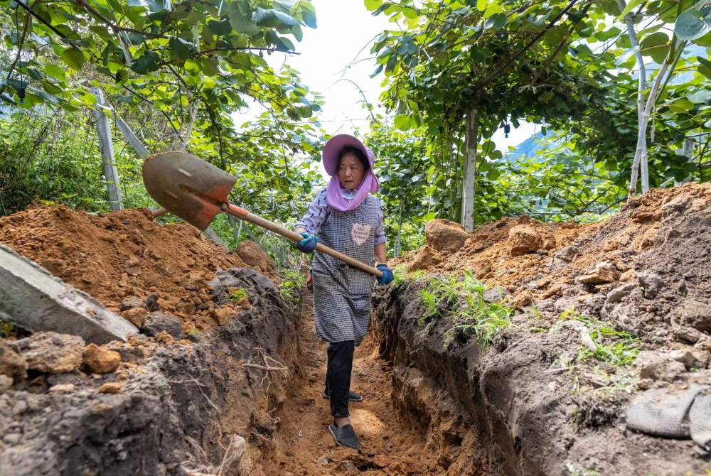村民在猕猴桃基地劳作。新华社记者周荻潇 摄