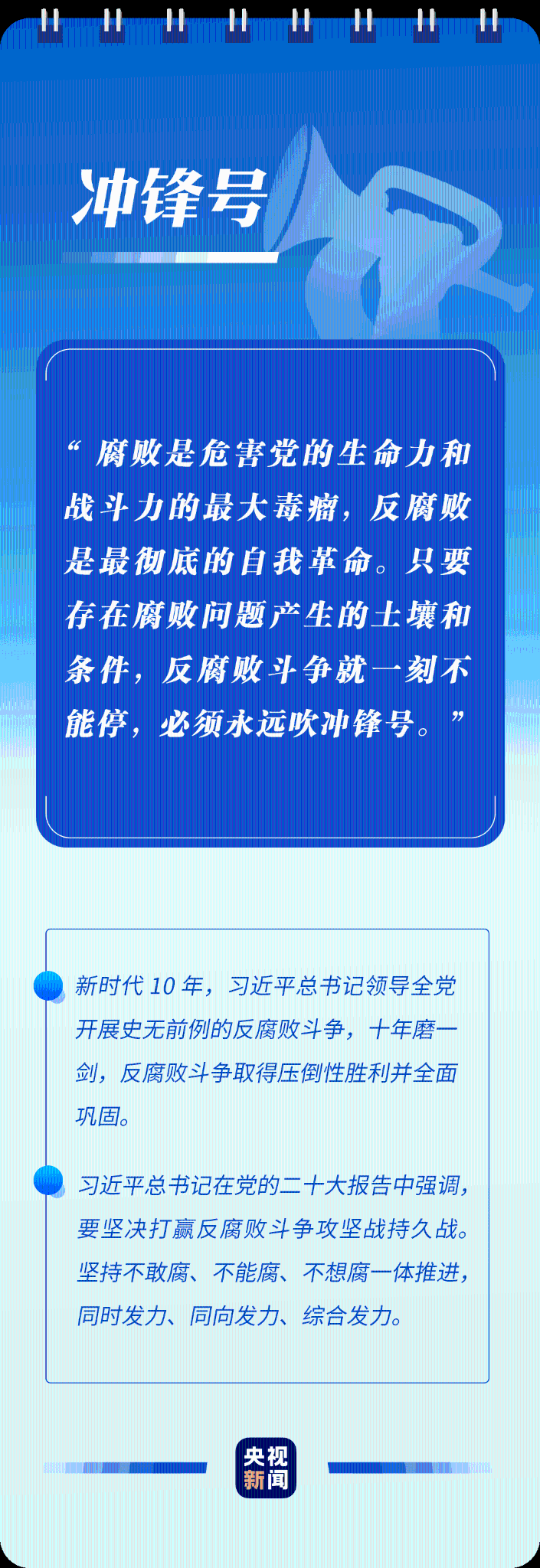 “只有植根本国、本民族历史文化沃土,马克思主义真理之树才能根深叶茂”“使党始终成为风雨来袭时全体人民最可靠的主心骨”“只要存在腐败问题产生的土壤和条件,反腐败斗争就一刻不能停,必须永远吹冲锋号”……