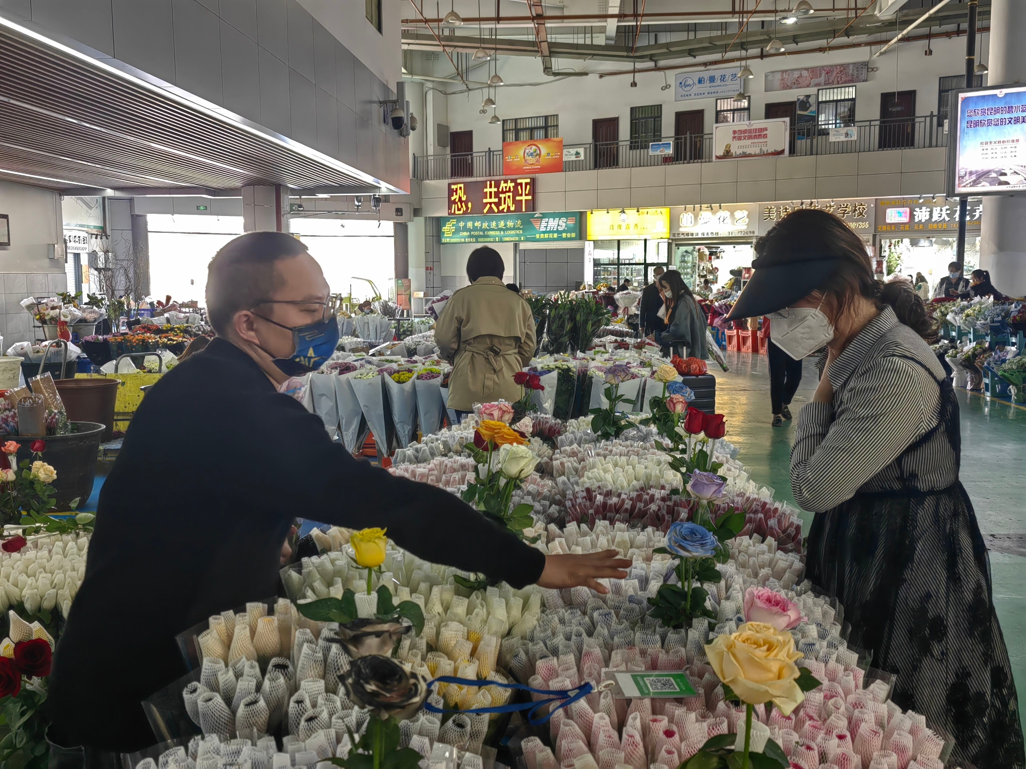 11月2日,随着电商“双十一”活动开启,斗南花卉市场经销商们也都已经进入了备货、发货期。