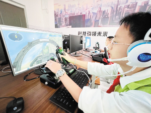学生进行模拟飞行操作。