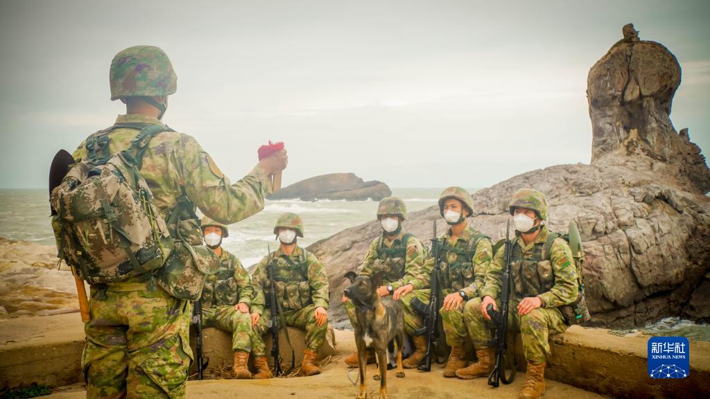 驻守在台山岛上的东部战区陆军某海防旅一连官兵,用快板的形式学习宣传党的二十大精神(10月28日摄)。新华社发(杨庆祥 摄)