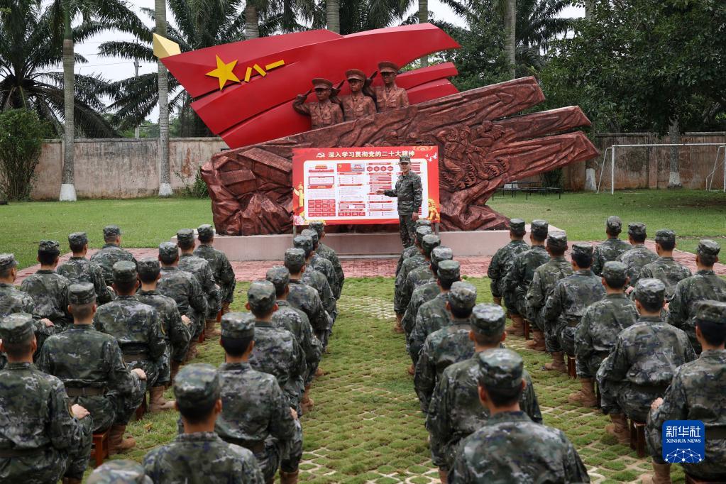 武警海南总队机动支队组织政治教员开展微课辅导,带领官兵深刻领会党的二十大精神(10月28日摄)。新华社发(雷辙 摄)