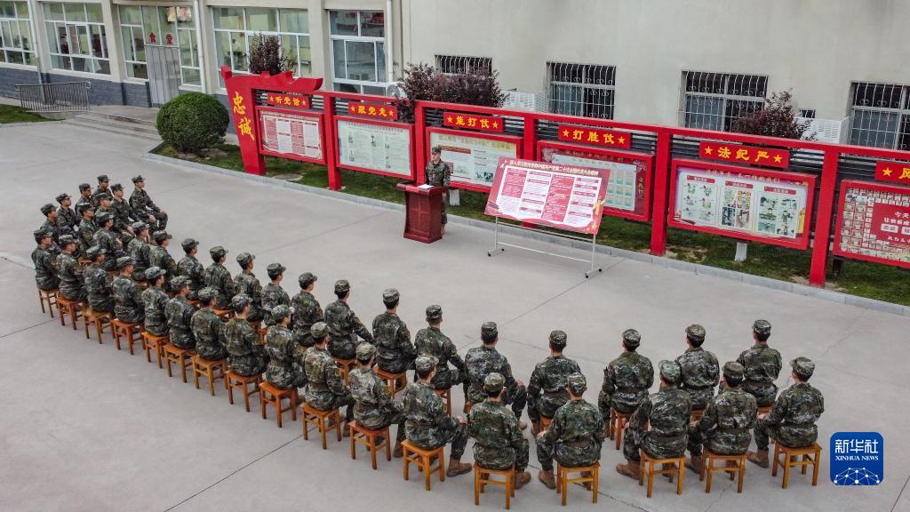 武警河北总队邢台支队官兵开展“士兵讲堂”学习宣传党的二十大精神(10月28日摄)。新华社发(徐强 摄)