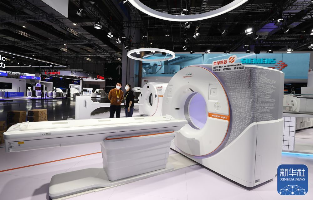 11月2日拍摄的德国西门子公司在进博会展台展出的大型医疗设备。