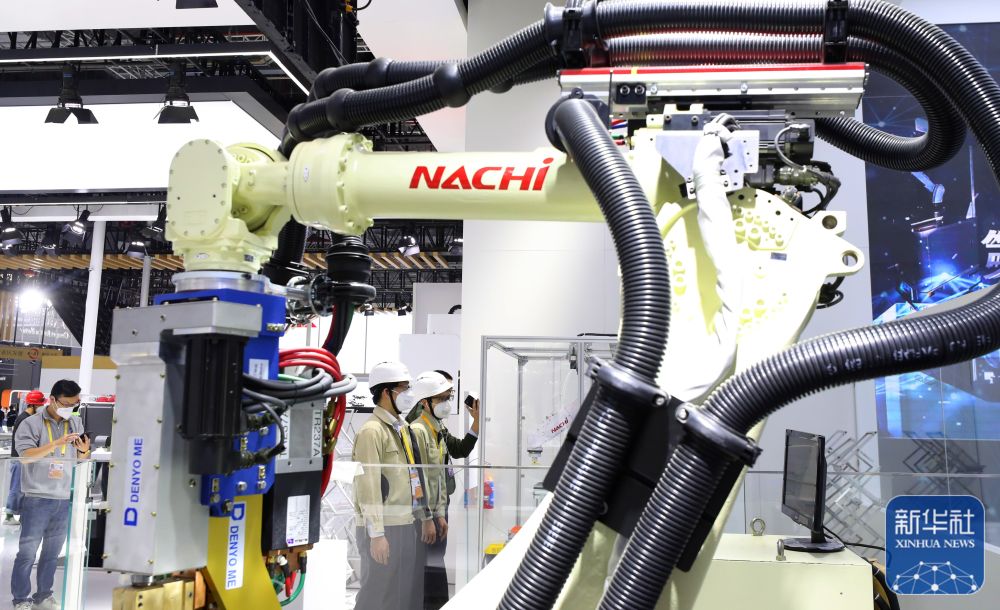 11月2日,日本那智不二越公司的技术人员在进博会展台调试设备。