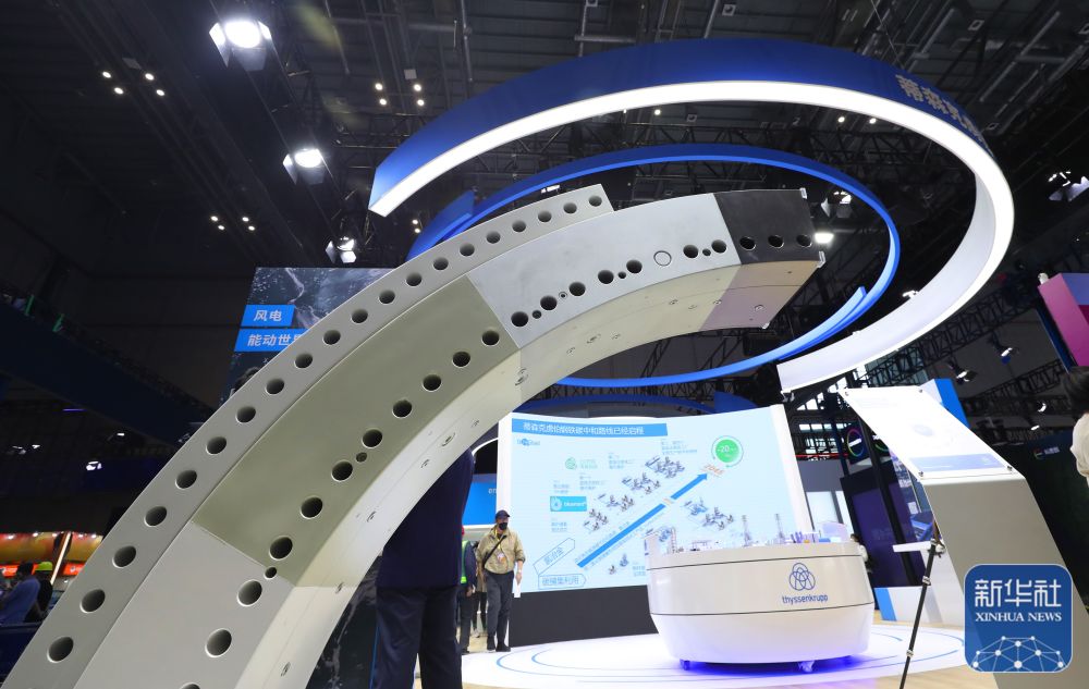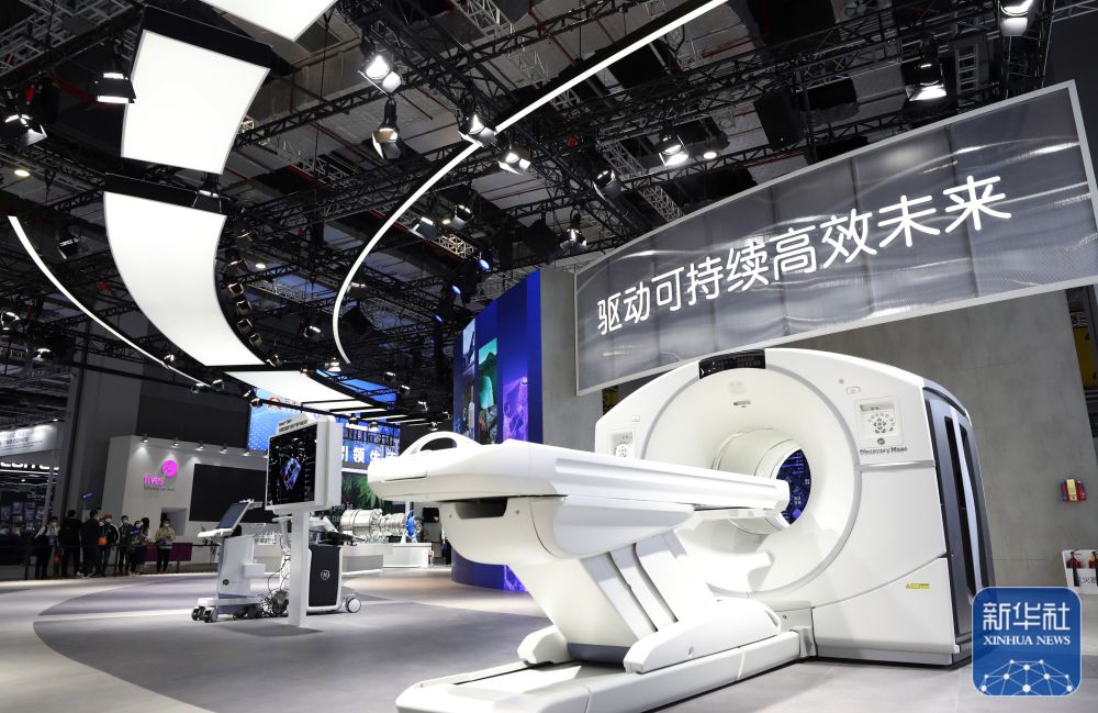 11月2日拍摄的美国GE公司在进博会展台展出的一台大型医疗设备。