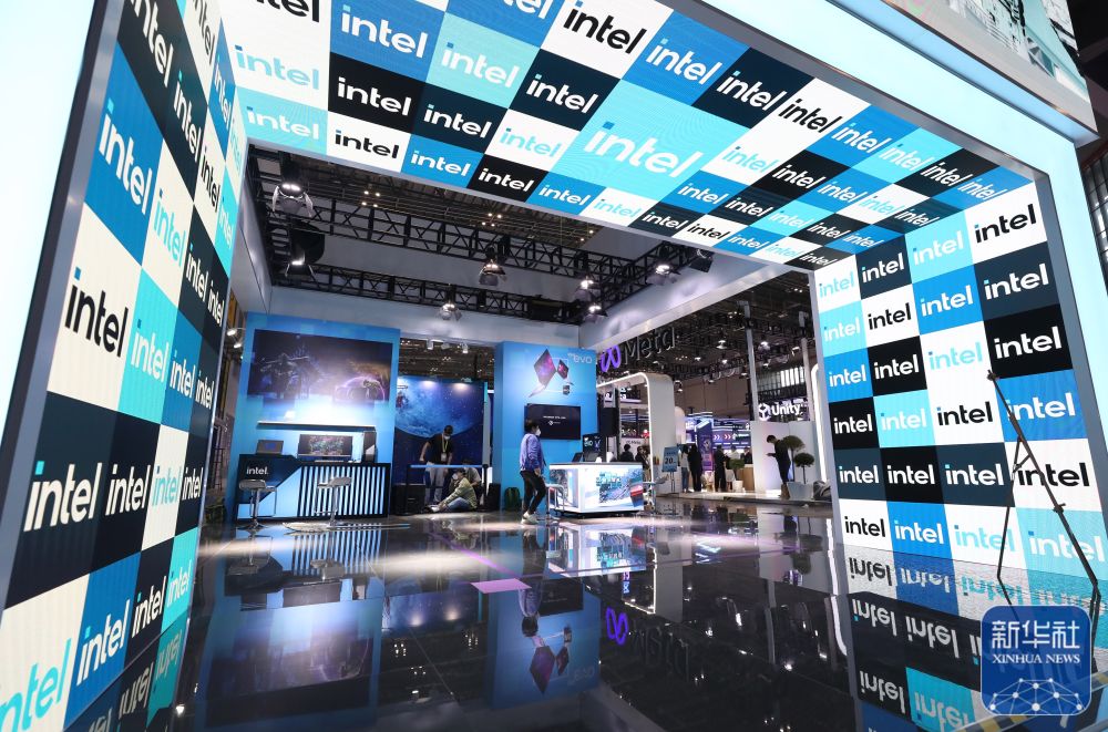 11月2日,工作人员在英特尔公司进博会展台进行布展调试。