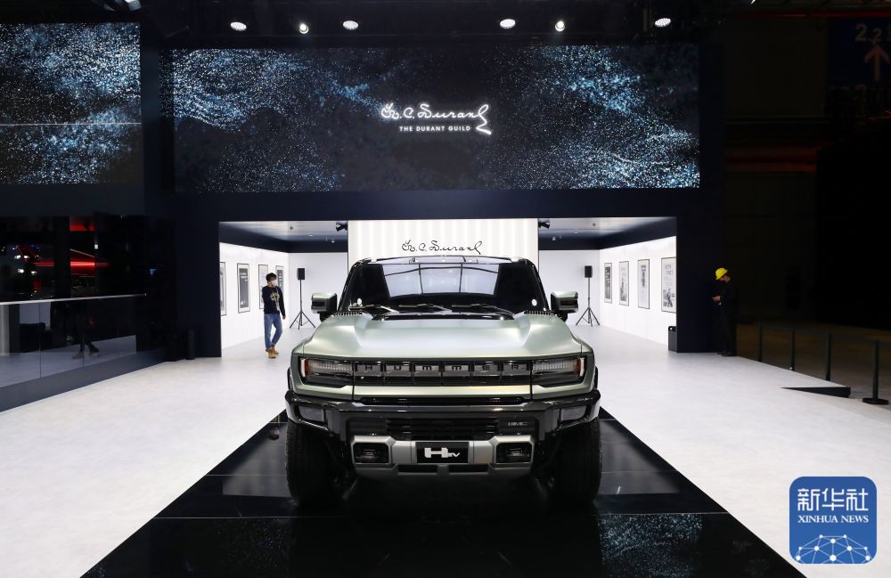 11月2日拍摄的通用汽车公司旗下道朗格品牌在进博会上展出的纯电悍马SUV车型。