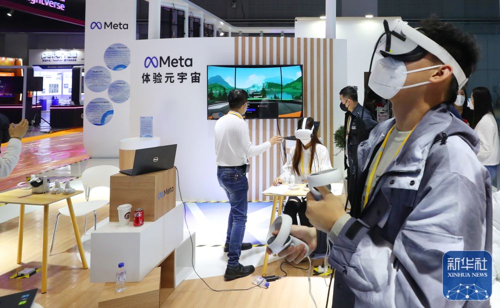 11月2日,工作人员在调试用于参观者体验的VR眼镜设备。