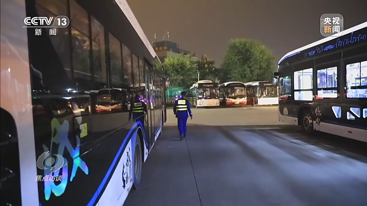 成都公交集团夜间充电专班充电员 袁源:我原来也是跑正规的公交线路,就像你们白天看见的公交司机一样。今年8月我们集团成立了夜间充电专班,我的工作岗位就做了调整。