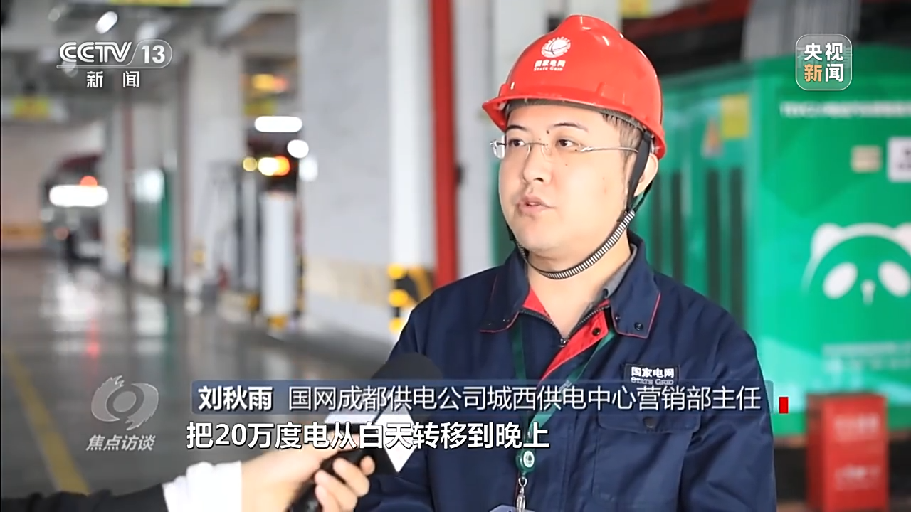 国网成都供电公司城西供电中心营销部主任 刘秋雨:把20万度电从白天转移到晚上,如果按照一户居民白天使用30度电来算的话,总共可以为6000多户居民提供正常用电的保障,而且是在夏季高峰期间,给电网缓解非常大的压力。